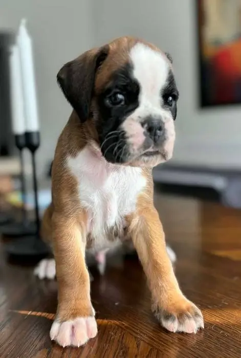 Introducing our Fawn Boxer puppy from Litter H at NorDom Kennel, born on December 27, 2025. This beautiful puppy is health checked, vaccinated, dewormed, ensuring she is ready for her new home. His parents, Ceres Gold for NorDom and Stephanie NorDom, are award-winning champions with excellent health test results. This playful and affectionate puppy will make a wonderful addition to your family. Contact us now to learn more and reserve your new companion today.