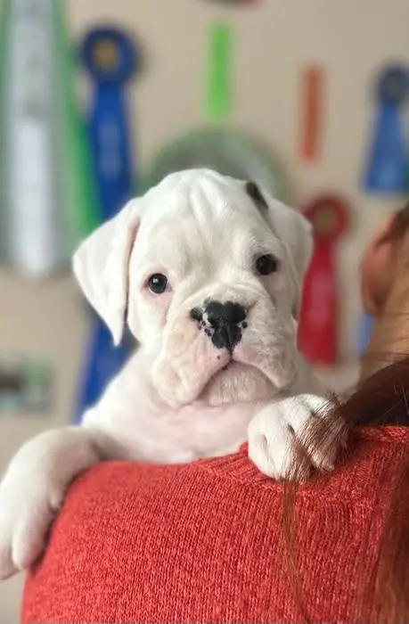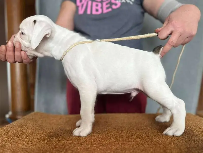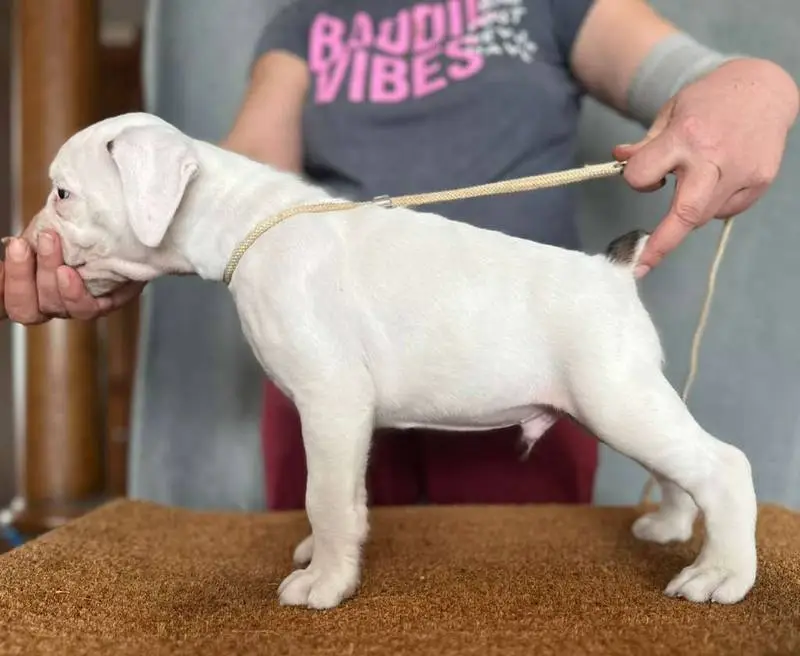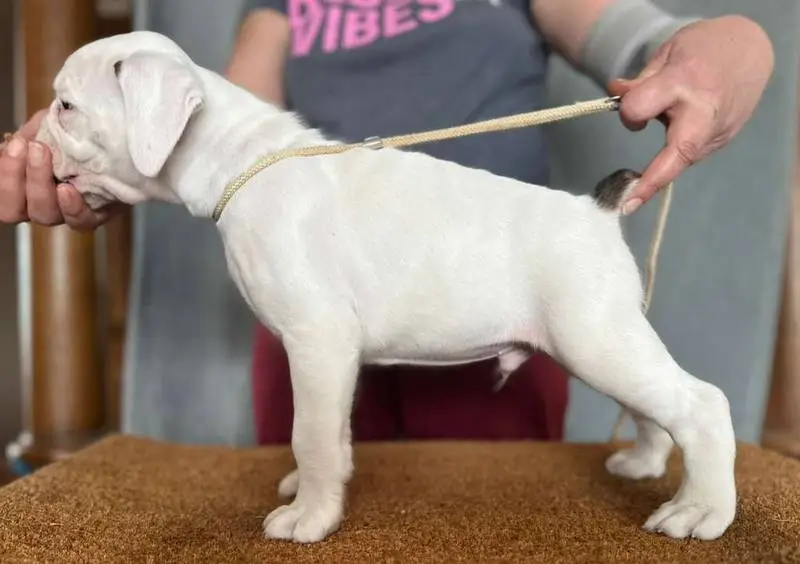 Introducing our White male Boxer puppy from Litter G at NorDom Kennel, born on December 20, 2025. This beautiful puppy is health checked, vaccinated, dewormed, ensuring she is ready for his new home. His parents, Ceres Gold for NorDom and Nemezida NorDom, are award-winning champions with excellent health test results. This playful and affectionate puppy will make a wonderful addition to your family. Contact us now to learn more and reserve your new companion today.